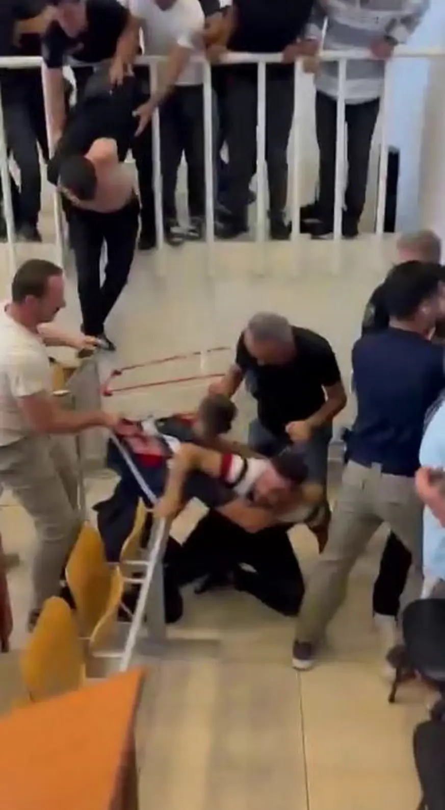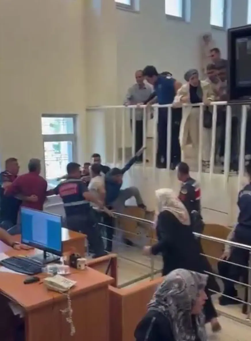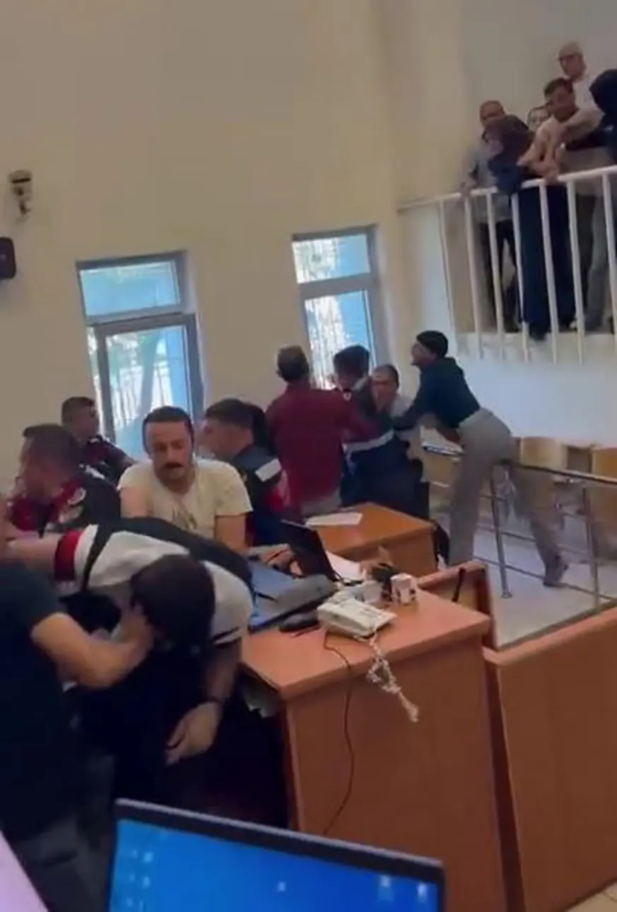 Görüntülerde tarafların, mahkeme salonunun tribünlerinden atlayan taraflar katibin bulunduğu alanda tekmeli yumruklu kavgaya tutuşuyor. Masa sandalye ve bilgisayarların zarar gördüğü kavgaya içeride bulunan jandarma ekipleri ilk müdahaleyi yaparken, içeriye daha sonra takviye olarak çağrılan polisler yardıma koşuyor. Ancak şiddetli kavgayı jandarma ve polis ekiplerinin durdurmakta zorlandıkları görülüyor.