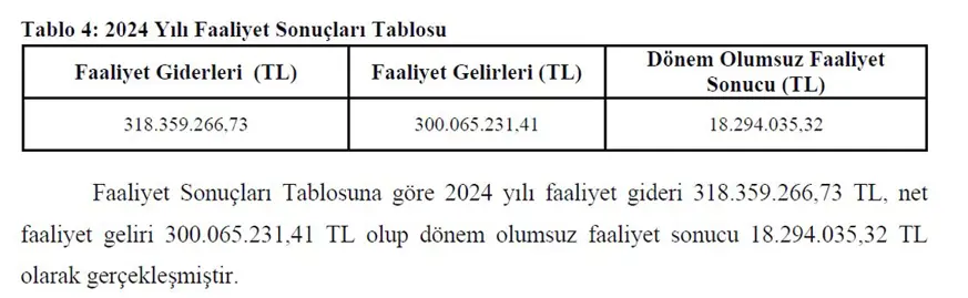 Sayıştay raporuna göre Ajans’ın mali tabloları güvenilir bulundu, ancak yıl 18 milyon 294 bin TL olumsuz faaliyet sonucu ile kapandı.