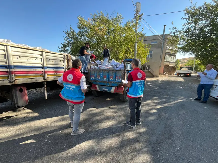 Çermik Kaymakamlığı Sosyal Yardımlaşma ve Dayanışma Vakfı tarafından merkez ve kırsal mahallelerde hane başına 25 torba kömür yardımı yapılıyor.