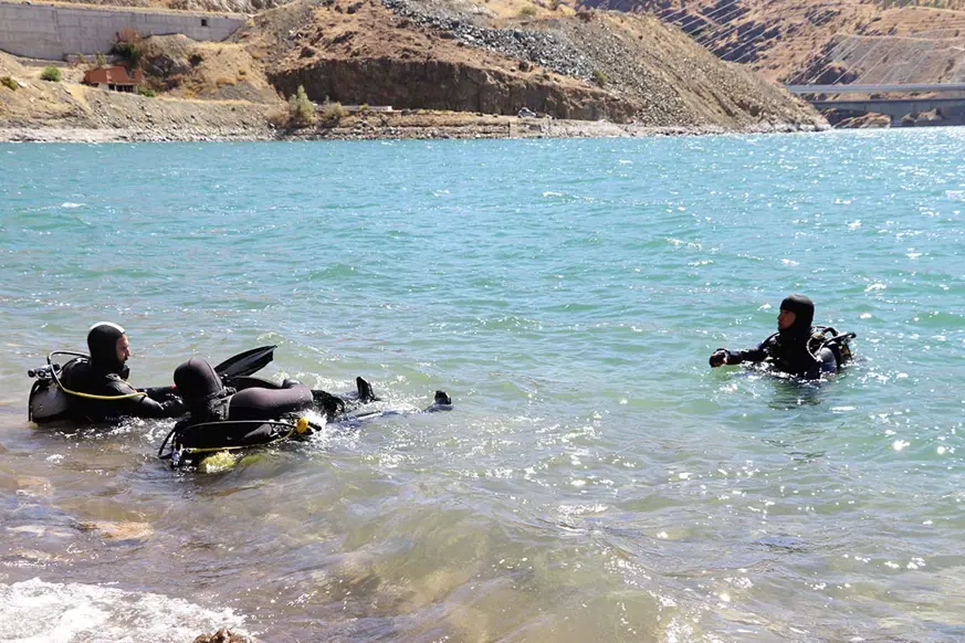 Elazığ'da bir grup gönüllü dalgıç, Fırat ve Dicle nehirleri üzerinde kurulu baraj göllerine dalış yaparak su altındaki tarihi kalıntıları görüntülüyor.
