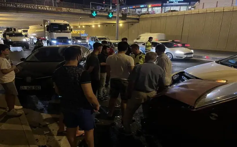 DİYARBAKIR - Kaza, saat 20.30 sıralarında Diyarbakır-Şanlıurfa karayolu Yenihal Köprülü Kavşağı alt geçidinde meydana geldi. 19 TE 232 plakalı araç seyir halindeyken alt geçitte arıza yaptı. Sürücü durumu yakınlarına bildirdi. Olay yerine 21 ACU 087 plakalı araç ile gelen yakınları, otomobili yol kenarına park etti. Arkadan gelen 21 KK 911 plakalı araç, seyir halindeki belediye otobüsünün kör noktasından çıkarken park halindeki iki otomobile çarptı. Kaza sonrası uzun kuyrukların oluştuğu trafikte sürücüler ilerlemekte güçlük çekti. 21 KK 911 plakalı otomobil sürücüsü, park halindeki araç sürücülerinin olay yerine uyarı levhası koymadığı için kazaya sebebiyet verildiğini iddia etti. Durumun 112 Acil Çağrı Merkezi’ne bildirilmesi üzerine olay yerine sağlık ve polis ekipleri sevk edildi. Kazada yaralanan olmazken, araçlarda maddi hasar meydana geldi. Olay yerine gelen Diyarbakır Trafik Denetleme Şube Müdürlüğü ekipleri, kaza ile ilgili inceleme başlattı.