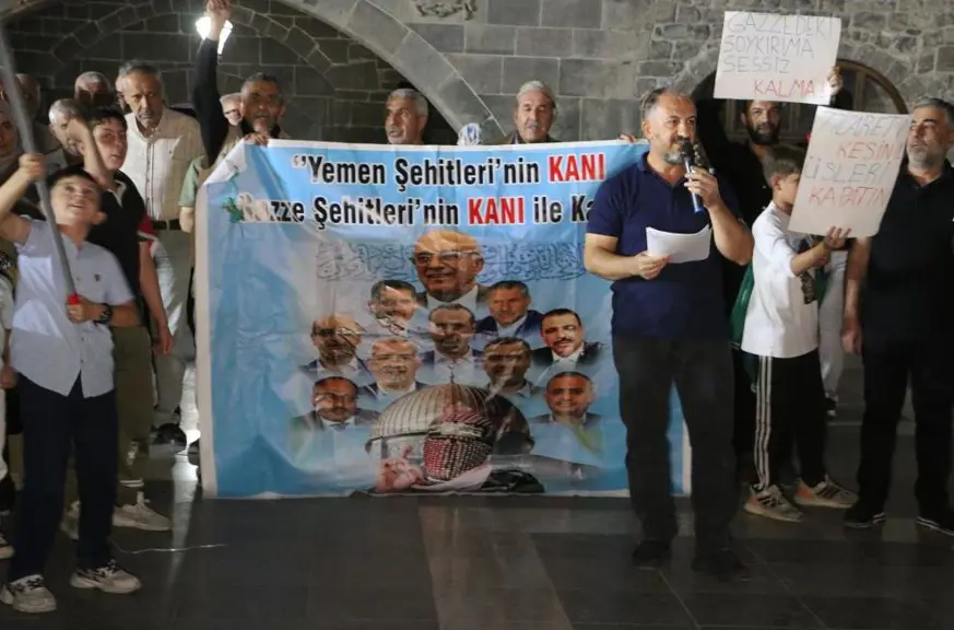 Katılımcılar adına açıklama yapan Kenan Adıgüzel, özgür halkların gücünün en canlı sembolünün Sumud Filosu olduğunu söyledi. Adıgüzel, "Sumud Filosu'nu daha önce Tunus'ta vurmuşlardı. Daha sonra 12 dron ile geçenlerde de vurdular. Halkını esir alan iktidarlar yine bu duruma sessiz kaldı. Terörist İsrail, ortağı ABD'nin senatörlerini, medyasını, Hollywood'unu sermayesiyle kontrol ederek bu vampirliği yapmaktadır. Ancak tüm insanlık bu teröristleri tanıyarak ayağa kalktı. Zulmü, vampirliği, terörist katliamları tüm dünyanın gözü önünde işleyen terörist bir şebekedir İsrail. Terörist İsrail'in en büyük sermayesi algıyla dünyayı kandırmaktır. 7 Ekim Aksa Tufanı, 107 yıllık vahşete, işgale, katliama ve teröristliğe bir baş kaldırıdır. 7 Ekim Aksa Tufanı, 100 yıllık katliamlara bir baş kaldırıdır. 1917'de İngiltere desteğinde vahşi domuz sürüleri gibi Filistin topraklarına akın eden terörist siyonistler, bu kutsal topraklarda, her yerde, her türlü terörist eylemden geri durmadılar. 1948'de ABD, İngiltere ve Haçlı Batı yöneticilerinin desteğinde Deir Yasin katliamı ve birçok katliamlarla Filistin toprakları terörist ve vampirler tarafından işgal edildi" dedi.