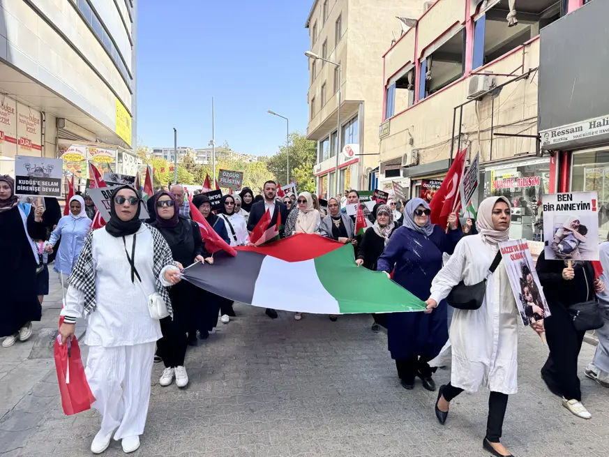 Siirt'te, AK Parti İl Kadın Kollarınca düzenlenen etkinlik kapsamında Siirt Üniversitesi Merkez Kampüsü'nde toplanan katılımcılar, "Filistin özgür olacak", "Ey dünya daha kaç çocuk ölmeli" yazılı dövizlerle, 15 Temmuz Demokrasi Meydanı'na kadar yürüdü.