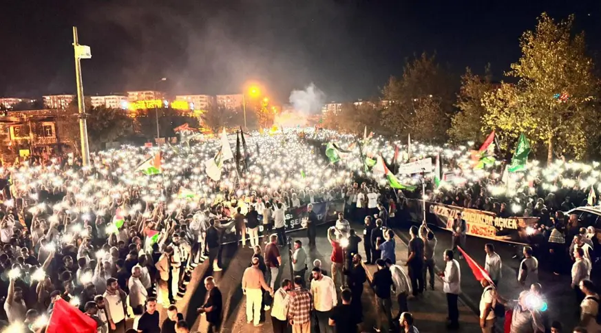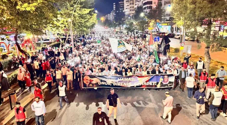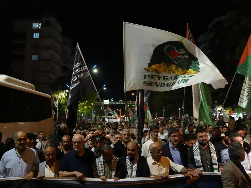 Kentte bazı sivil toplum kuruluşlarının öncülüğünde merkez Kayapınar ilçesinde bir araya gelen katılımcılar, ellerinde Türk ve Filistin bayraklarıyla Ahmet Arif Caddesi'ne kadar yürüdü.
