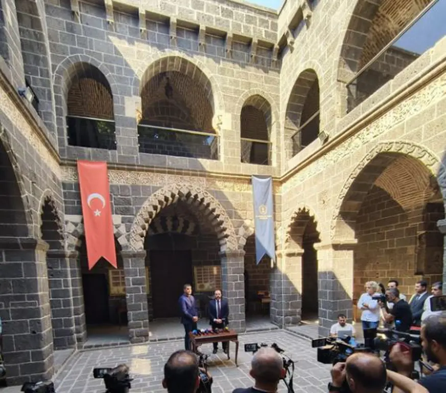 Diyarbakır Büyükşehir Belediyesi DİSKİ Genel Müdürlüğü ile Diyarbakır İl Müftülüğü, yaşamın temel maddelerinden olan suya dikkat çekmek amacıyla önemli bir iş birliğine imza attı. Sur ilçesindeki tarihi Ulu Caminin avlusundaki Mesudiye Medresesinde düzenlenen ortak basın toplantısına DİSKİ Genel Müdürü Mehmet Şerifoğlu ve Diyarbakır İl Müftüsü Celal Büyük katıldı.