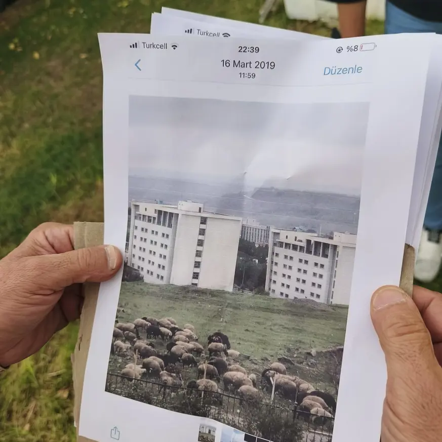 "Ayrıca gördüğünüz bu yapı hazinenin Dicle Üniversitesine eğitimde kullanılması amacıyla bağışladığı bir arazidir. Toplamda 160 dönüm arazi işgal edildi. Bu kısımdaki 80 dönüm civarında bir arazidir. Bu yol Silvan Karayoluna bağlanan kaçak bir yol. Bağlantı yolu sağlıklı olmadığı için her an burada kaza olabilir. Site yönetimine defalarca ikaz etmemize rağmen, arazinin devlete ait olduğunu söylediğimiz halde, burada site nizamiyesi yapmışlardır. Bunu belediyeye bildirdim kaçak olduğuna dair zabıt tuttular. Yıkım kararı da alınmış ama maalesef yıkmıyorlar. Site başkanı yıktırmıyor. Buradan devletin savcı ve hakimlerine sesleniyorum. Diyarbakır Valisine sesleniyorum. Dicle Üniversitesi yönetimine ve öğrencilerine sesleniyorum. Buradaki araziye sahip çıkın. Bu araziler Diyarbakır'ın en değerli arazileridir. Bu işgale son verilmez ise, devlet bu arazileri satışa çıkaracak. Bazı kişilerin istediği olacak. Üniversite yönetimi sessiz. Çünkü burada evi olan üniversite hocaları var. Bir şekilde rektörü susturuyorlar. Rektörlüğe 5 dilekçe verdim. 5 yıldır dilekçelerime cevap bile verilmiyor. Dicle üniversitesine tahsis edilen arazilerde daha önce buralar meraydı koyunlar otluyordu"