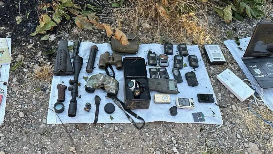Açıklamada, bölgede, 1 RPG-7 roketatar, 2 RPG-7 mühimmatı, 3 sevk fişeği, 2 el bombası, 2 el dürbünü,1 12 x dürbün, 1 PTZ kamera, 9 telsiz, 3 kamera, 20 termal şemsiye, 2 silah dipçiği, 1 susturucu, 1 televizyon, 1 tuşlu telefon, 3 oyun cihazı CVD okur, 1 oyun konsolu, 1 oyun adaptörü, 1 aç konuş telefon diyafonu, 1 mini televizyon, 6 top EYP yapımında kullanılan kablo, 1 çuval pil, 2 büyük tüp ve 4 küçük tüp ele geçirildiği kaydedildi.