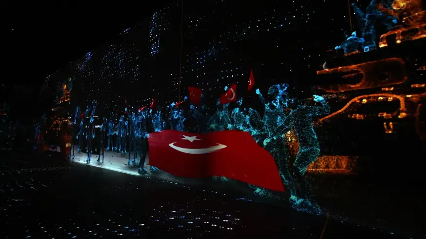 Ziyaretçiler, 15 Temmuz darbe girişiminin başlamasından önlenmesine kadarki süreçte yaşananları, video projeksiyon uygulamasıyla "En uzun gece" salonunda izleyebiliyor.