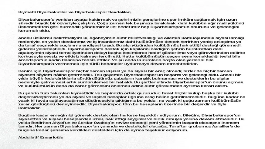 İstifa eden Başkan’dan açıklama!