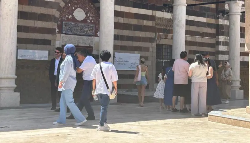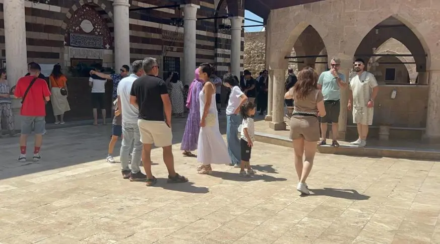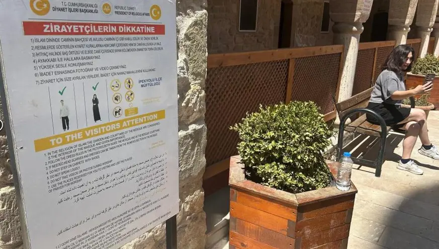 Türkçe, İngilizce, Arapça ve Kürtçe yazılı "İslam dininde caminin avlusu caminin içi gibi kabul edilir ve önem verilir" uyarı tabelasına da ziyaretçilerin aldırış etmediği bildirildi.