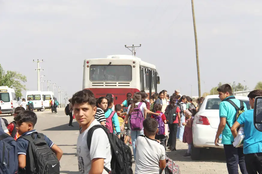 Öğrenciler bir süre yürüyor.. Sonra belediyenin geçici tahsis ettiği otobüslere binerek okula gidip geliyorlar.. Balık istifi.. Resimde görüldüğü gibi.. Yetersiz.. Öğrenci velileri, veryansın ediyor.. Sesimizi duyun, ne olur sorunumuza çözüm bulun diyor!. Yoksa okula göndermeyiz!