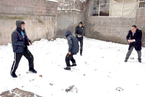 DİYARBAKIR-Gece geç saatlere kadar sokak ve caddelerde devam eden kar temizleme ve tuzlama çalışmalarını takip eden Bağlar Belediye Başkanı Hüseyin Beyoğlu, kar keyfini çıkaran çocuklarla kartopu oynadı. Başkan Beyoğlu ile çocuklar arasındaki kartopu oyununda ortaya renkli görüntüler çıktı. Eğlenceli anlar yaşayan çocuklar, renkli görüntülerin oluşmasına neden olan Başkan Beyoğlu ile hatıra fotoğrafları çekti. Çocuklar daha sonra evlerine döndü.