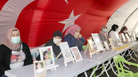 Ellerinde çocuklarının fotoğrafıyla bekleyişini sürdüren annelerden Aydan Arslan, kızı Aysun'a kavuşmak için oturma eylemi yaptığını belirterek, "Evlatlarımız gelene kadar bu eylemi sürdüreceğiz. Evlatlarımızı HDP'den istiyoruz." diye konuştu.