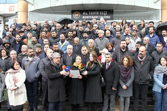 Ortak açıklama öncesi konuşan DTSO Başkanı Mehmet Kaya, “Bildiğiniz gibi son dönemlerde özellikle Diyarbakır’da sivil toplum örgütlerimize yönelik bazı basın organlarında ve sosyal medya mecralarında hedef gösterici bazı yazılar çıkıyor. Bunların tesadüf olmadığına ve geçmiş zamanların bir başlangıç senaryosu olduğunu ifade etmek isteriz. Son dönemde Baro Başkanımıza ve ailesini hedef gösteren bir sosyal medya da bir çalışma var, bunu herkes görüyor. Bununla ilgili geçmiş günlerde kurduğumuz, içinde emek ve hak örgütlerinin olduğu kent platformu kurduk. Bu son yaşanılanlara ilişkin ortak bir metin kaleme aldık” dedi.